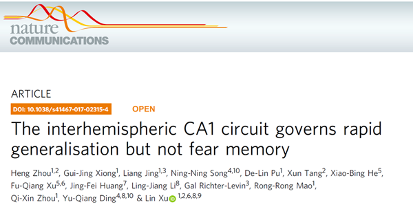 1.Zhou H, Xiong G-J, Jing L, Song N-N, Pu D-L, Tang X, et al. The interhemispheric CA1 circuit governs rapid generalisation but not fear memory. Nature communications. 2017;8: 2190.