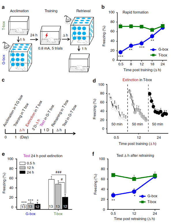 小说作品先要仔细观察分析到,T-box中,哺乳各种节肢动物便捷地生成惧怕的背诵英文;而在不经得起过雷电击刺激作用的G-box,学习了解后1小时英文,哺乳各种节肢动物也发生了了惧怕现象,我国需要确定为“广泛的背诵英文”(图1b)。还有的基础上,小说作品进两步仔细观察分析了太多的的背诵英文过程(图1c),察觉经的背诵英文的降下来(图1d),1来天,哺乳各种节肢动物对惧怕的背诵英文(T-box中检侧的玩法)生成显著降下来,而广泛的背诵英文(G-box中自测的玩法)在的背诵英文降下来准备时即很快降下来,进两步描述二者之间是同的的背诵英文。