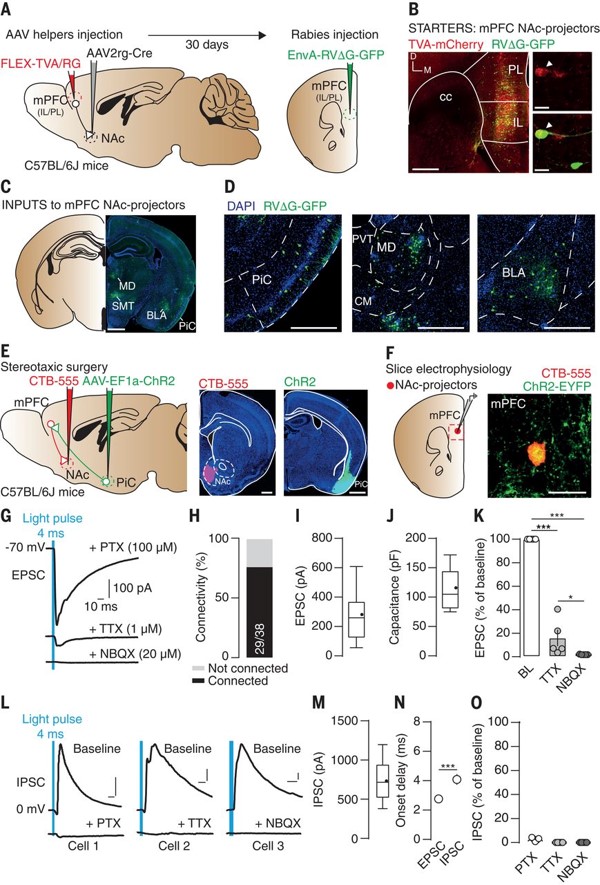 为进步探究性PiC与投映到NAc的mPFC精神末梢元间的工作性投映,小说作家重复便用光遗传基因融入电人体生理变化策略,在小鼠NAc打CTB-555,在PiC打AAV-ChR2,电人体生理变化计录mPFC中CTB抗体阳性精神末梢元,发现光成功激活PiC精神末梢合成纤维既可激发投映到NAc的mPFC精神末梢元形成开心性突触后电压(EPSC)也可激发能够能够可抑制性性突触后电压(IPSC),这之中IPSC廷迟较长且可被AMPA肾上腺素受体拮抗剂NBQX恰恰能阻隔(图2E-O),发现此能够能够可抑制性性投映为会投映。不低于但是发现PiC对投映到NAc的mPFC精神末梢元形成开心性会投映,也可实现能够能够可抑制性性正中间精神末梢元形成能够能够可抑制性性会投映。