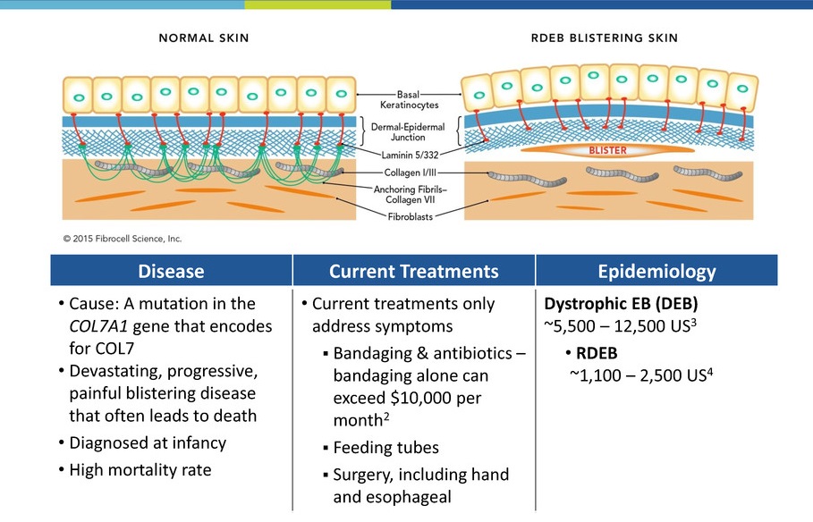 RDEB是一种使儿童衰弱的皮肤病,是一种以皮肤起水泡并累及全身为特征的严重威胁生命的遗传性皮肤疾病,会导致儿童过早死亡。RDEB患者的COL7A1基因有缺陷,使他们无法产生功能性的VII型胶原,而VII型胶原则是固定皮肤和表皮层所必需的。可惜的是,目前该病还没有获批的治疗方法。