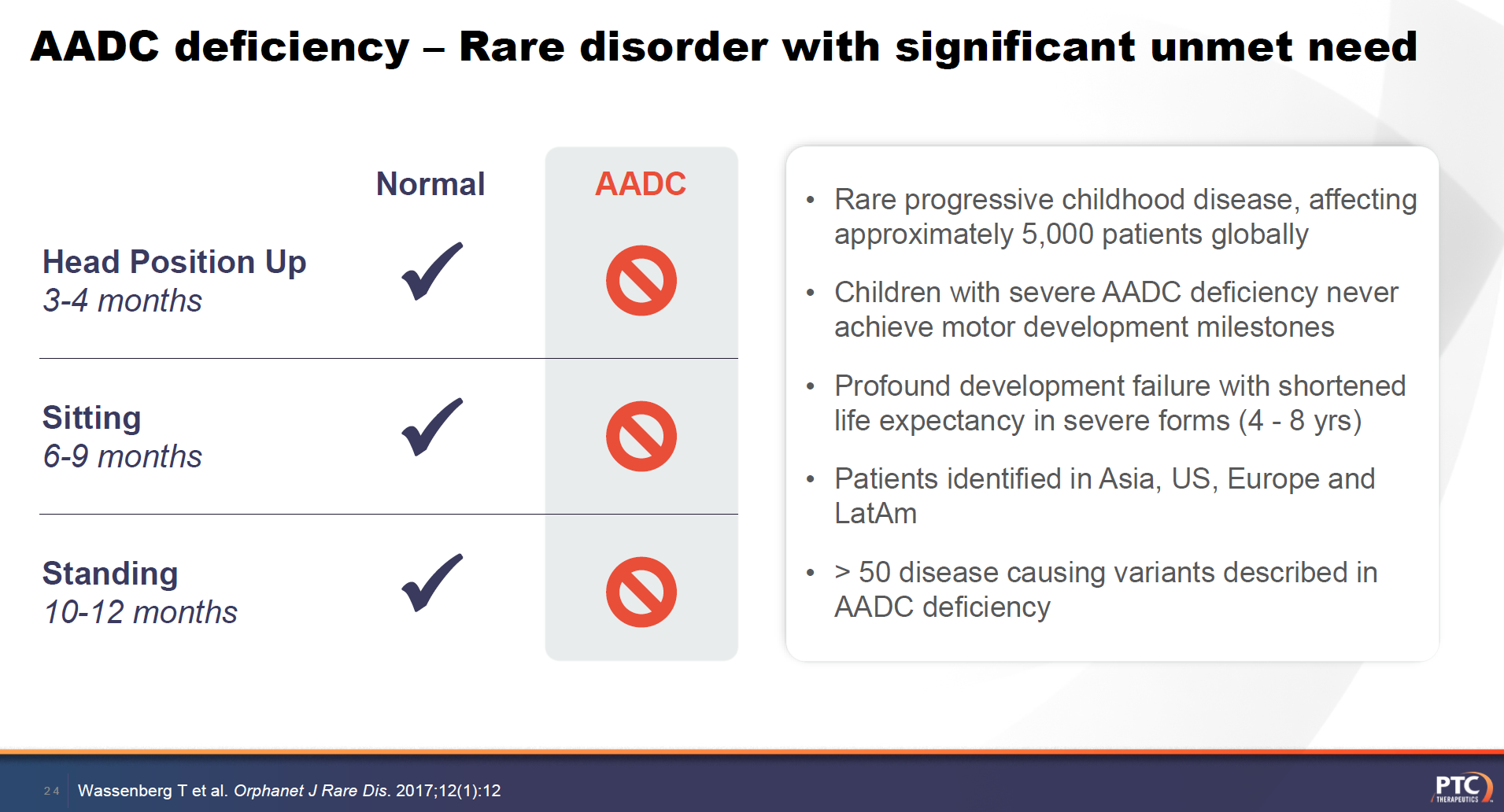 PTC Therapeutics公司近日宣布,他们正计划向美国FDA申请批准其用于治疗芳香族L-氨基酸脱羧酶缺乏症(AADC)的基因疗法PTC-AADC上市。该申请将于今年下半年以生物制品许可证(BLA)的形式向FDA提出。