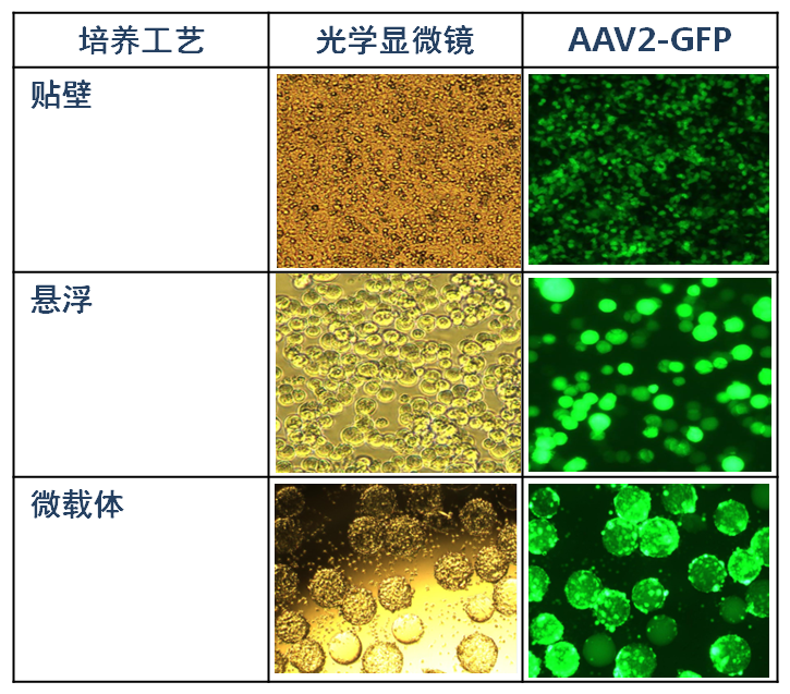 贴壁、悬浮按钮和微承载塑造工艺技术的癌细胞形状和AAV2-GFP