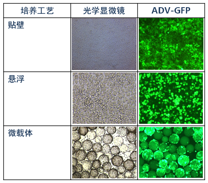 三个的培养加工下HEK293的腺病毒感染产毒水准