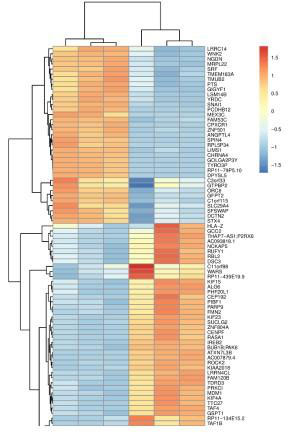 | d.差异mRNA表达水平散点图分析 | d.差异lncRNA表达水平聚类分析 |