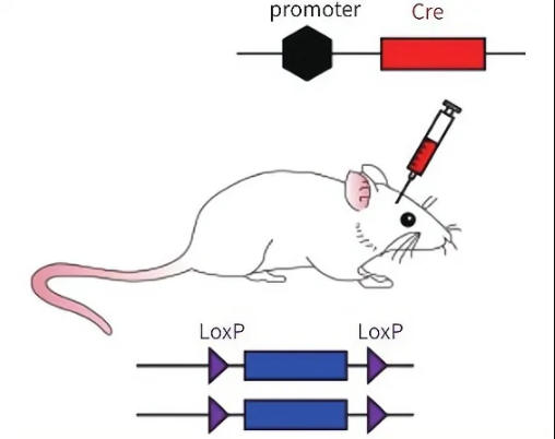 图5 LoxP动物结合表达Cre的病毒进行基因敲除