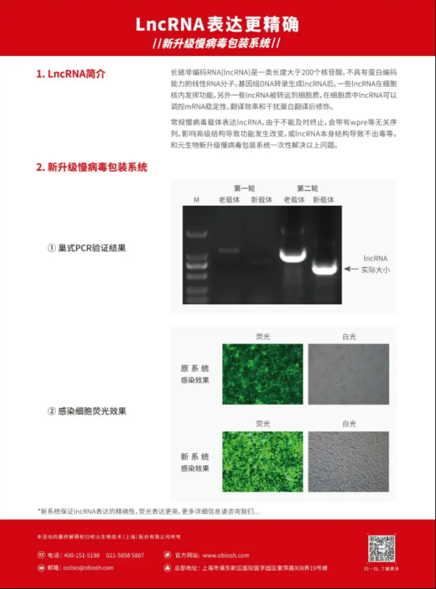 针对以上这些问题,银河集团官网 生物推出新升级慢病毒系统一次性解决以上问题,让lncRNA精确表达。