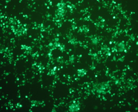 使用银河集团官网 病毒包装细胞系转染试剂包装慢病毒照片(98%以上细胞产毒,293T细胞)