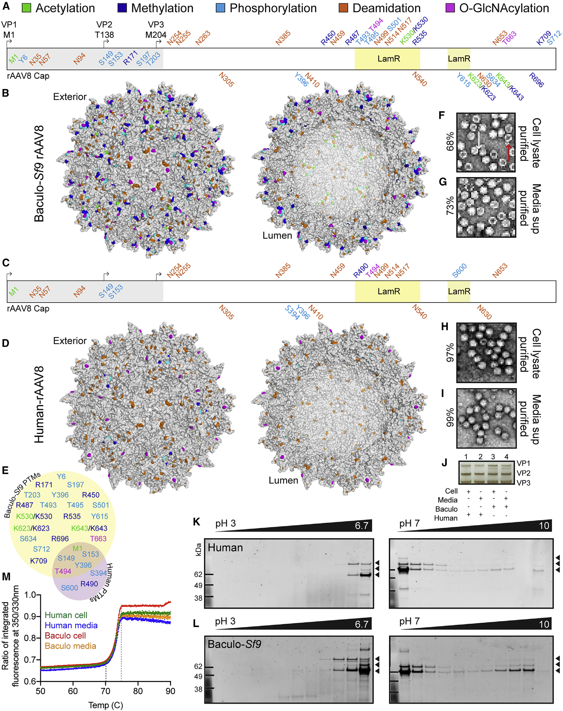 1)不一样的的再生系統制作的rAAV艾滋病毒粒子衣壳具备不一样的的PTMs,也包括糖基化、乙酰化、磷碱化和甲基化(图3);