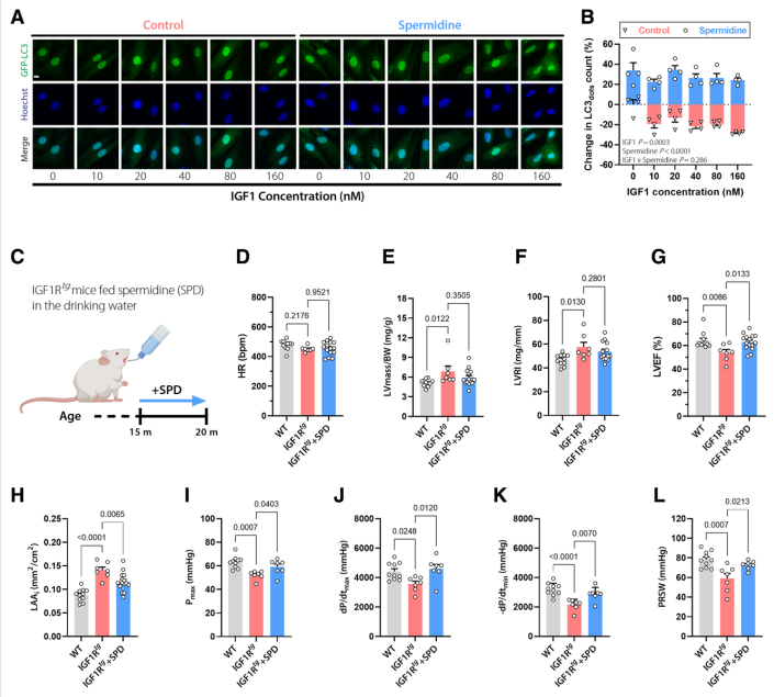 为了更加充分表明中老龄阶段Tg小鼠自噬失萃取心性能损失互相的因果关系的,探析者给小鼠摄入亚精胺,前就已表明亚精胺也可以增強中老龄阶段小鼠的心脏病自噬。实验操作否认亚精胺能有效果拦截IGF1分析的心肌人体细胞系自噬治理和改善。由4个月的亚精胺驯养后对Tg小鼠二尖瓣来评价指标,出现 亚精胺驯养的Tg小鼠的心率、LV质量管理和规则化股价指数与未工作Tg小鼠基础相等。尽管亚精胺可以大逆转已打造的心肌肥厚,但它也可以优化左室射血、重新构建及上限最高压等。补亚精胺起码在很大的情况上调节了新陈代谢Tg小鼠的三羧酸循环往复和糖酵解前面体的平均水平。不低于以上数据提示卡,心脏病自噬少将会参入了中老年人Tg小鼠心用途心理障碍加剧的的过程。
