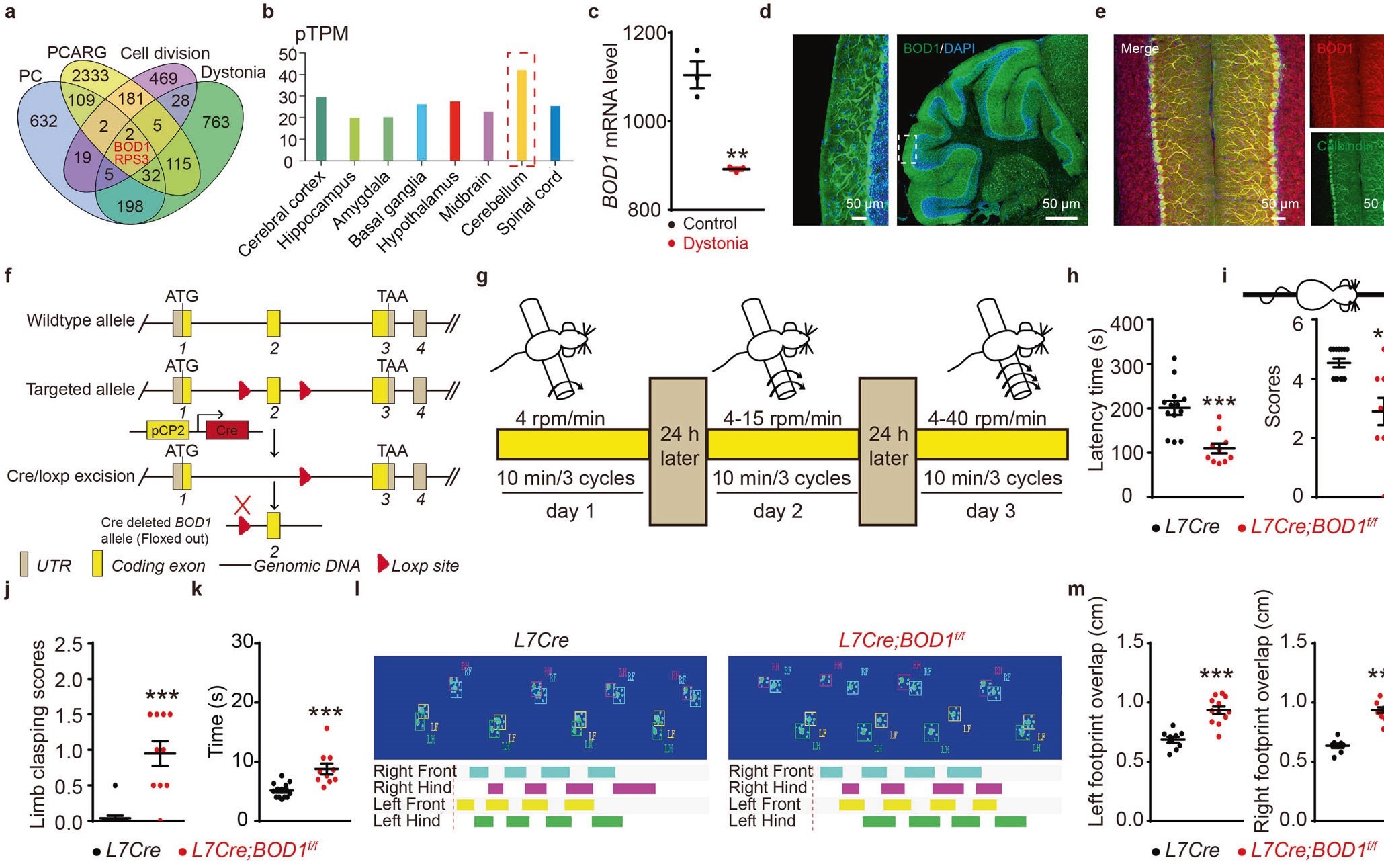 IV/V叶浦肯野细胞核BOD1缺少可导致共济失常