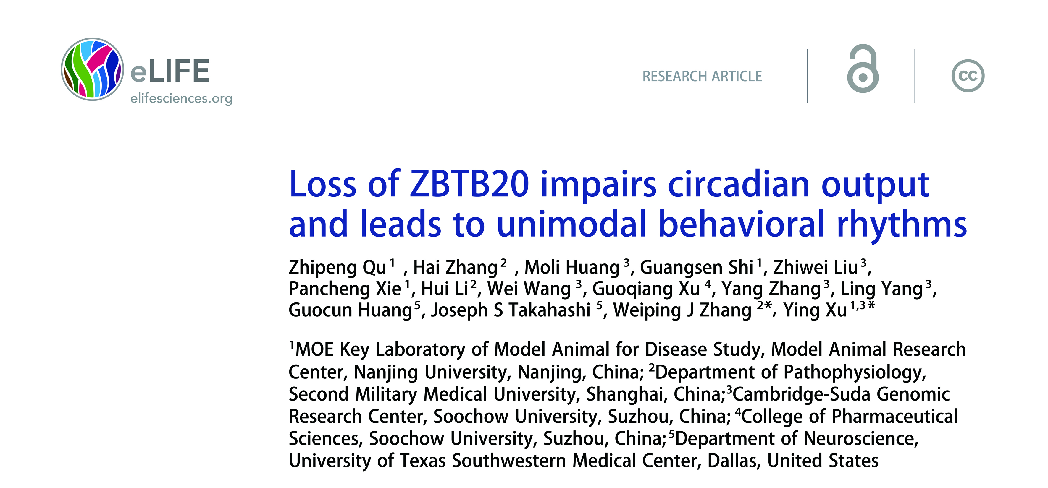 近日,南京大学模式动物研究所的徐璎课题组与第二军医大学章卫平课题组共同合作在国际生物和医学领域权威杂志《eLife》(IF=8.303)上发表论文,题为“Loss of ZBTB20 impairs circadian output and leads to unimodal behavioral rhythms”,发现锌指蛋白ZBTB20是调控小鼠早晚活动峰的关键分子。文中使用的腺相关病毒(AAV)由银河集团官网 生物包装提供。
