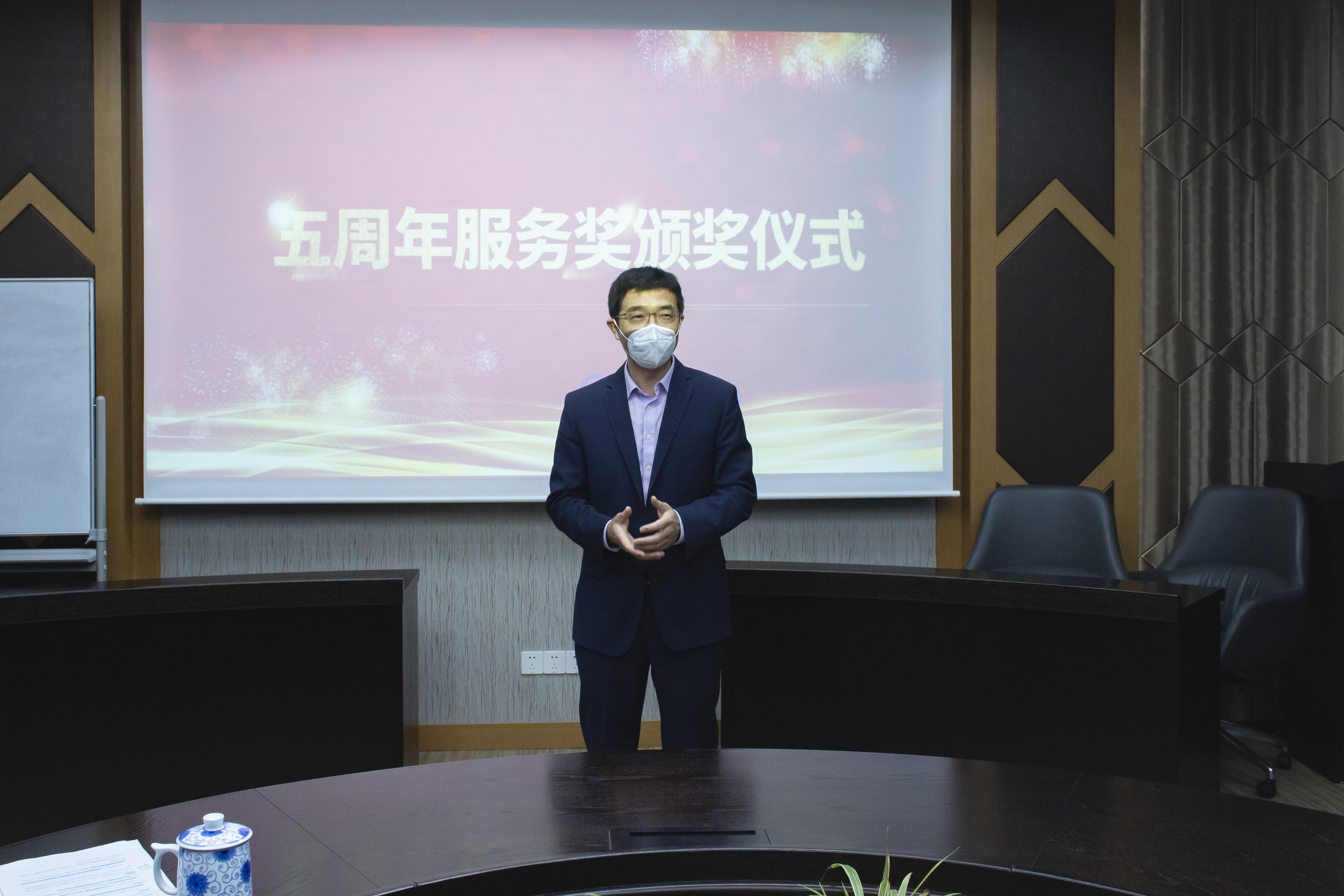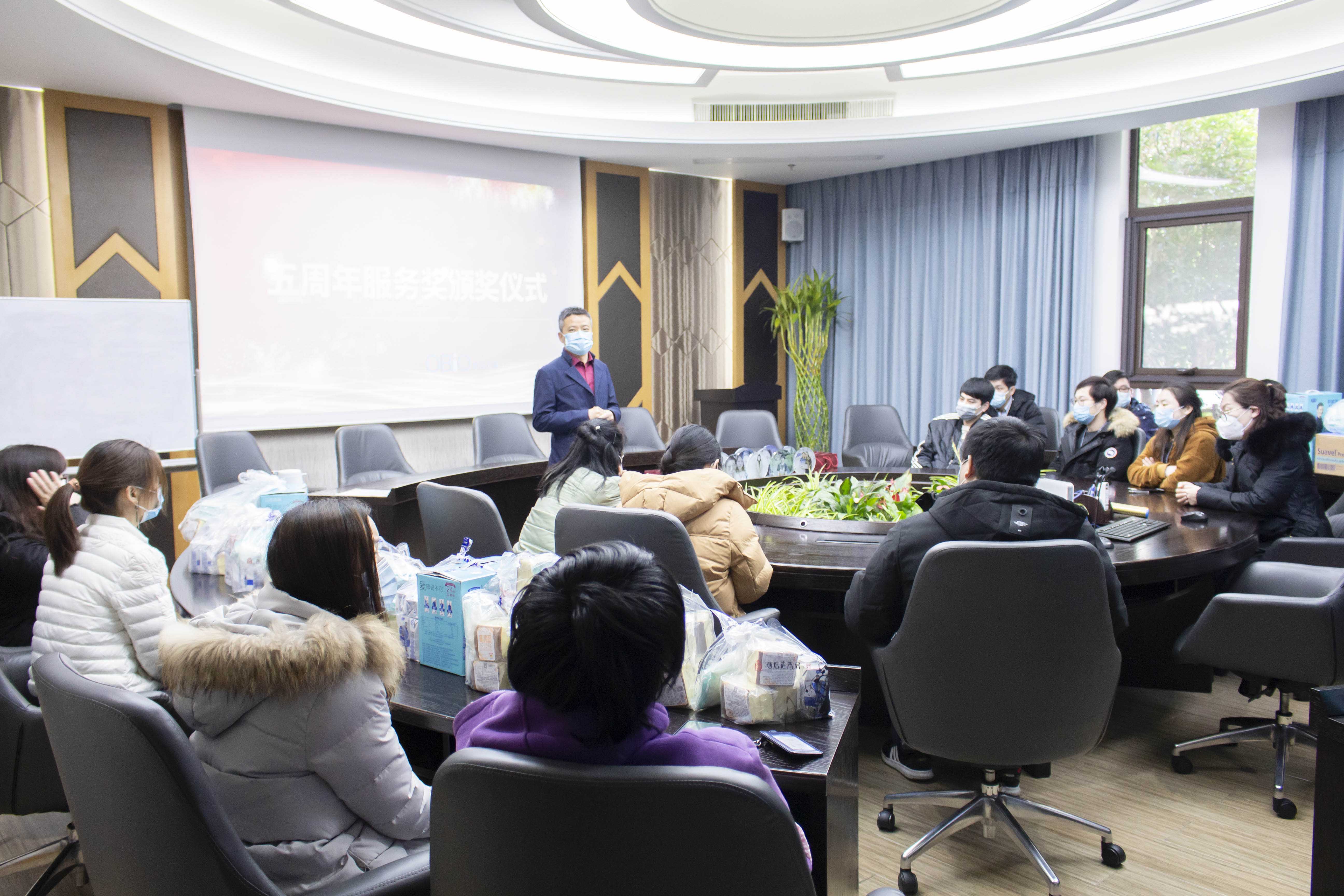 领军们为六年工作奖获取者发证奖牌和纪念册品