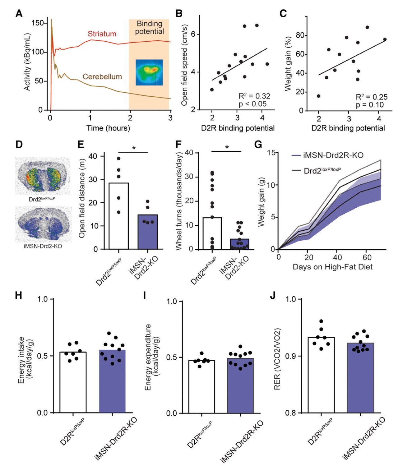 底下毕竟证明格式变胖极大减少D2R和多巴胺的构建,因而诱发小鼠的自行车足球跑步变弱,那样D2R总体水平降底诱发自行车足球跑步变弱后是否需要会使小鼠更可能变胖呢?做者在iMSNs中特异的敲除D2R遗传基因,毕竟看到小鼠的自行车足球跑步变弱(图5D-5F),然而D2R敲除小鼠的饮食和势能花费和野山型小鼠比较没不同,为此其体重增加相对应野山型小鼠也没产生不同(图5G-5J)。这代表变胖是使得的小鼠自行车足球跑步变弱的主观原因,而D2R的多巴胺信号灯并不诱发变胖的引发。