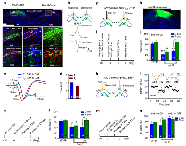 下面来小编灵活运用病原体码示踪和电生理上的方式方法解答了两侧海马CA1之前的突触关联(图3a-d)。进十步,是为了开展一条突触关联与广泛回忆里的英文的内在联系,小编使用的腺有关病原体码的载体,将破伤风黑色素轻链(TetLC表述在海马CA1),抑制海马CA1投影运动神经元的递质增加,找到两侧抑制显然拉伤焦虑回忆里的英文和广泛回忆里的英文,而偏侧拉伤影晌的是广泛回忆里的英文。
