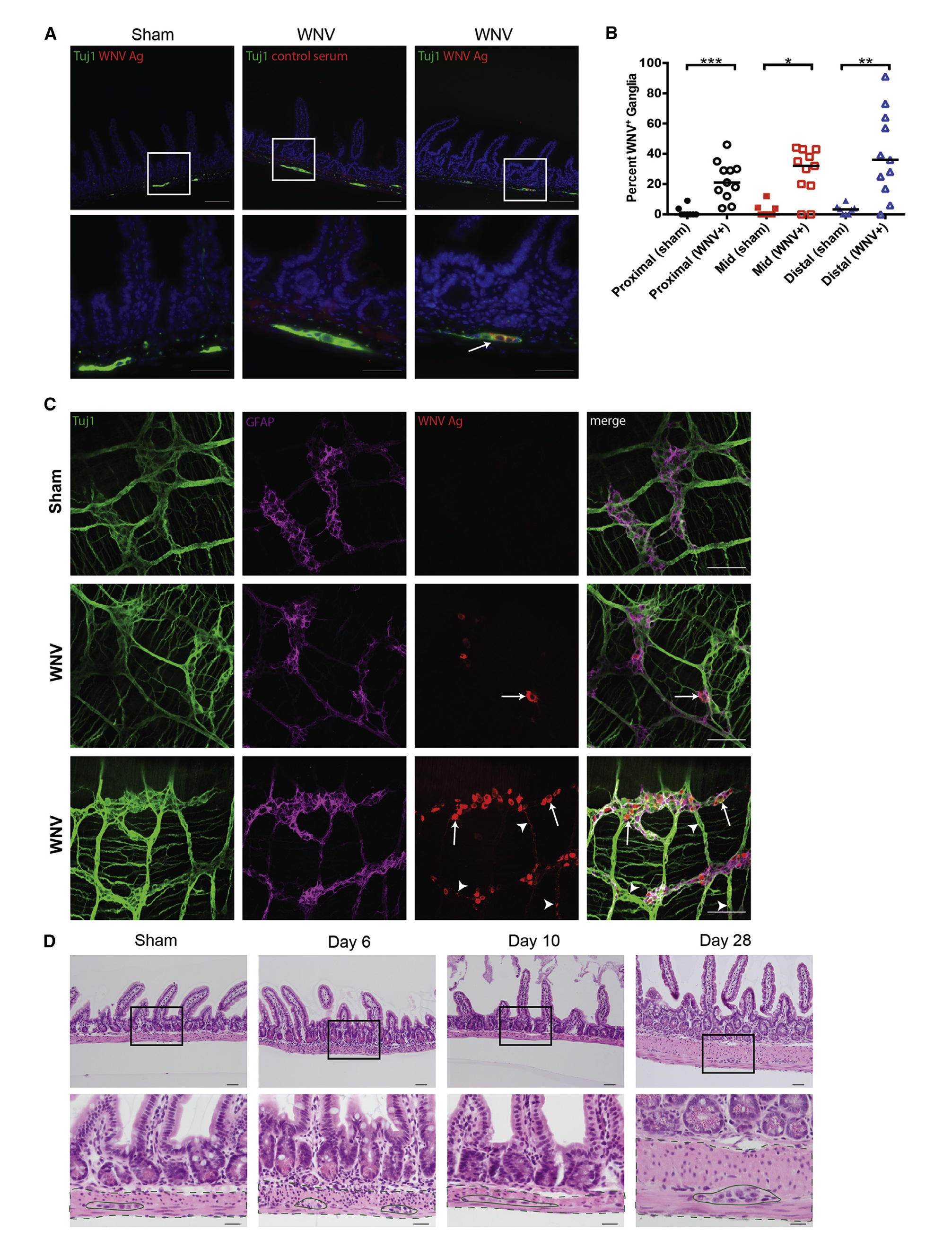图3 受WNV传染肠子末梢