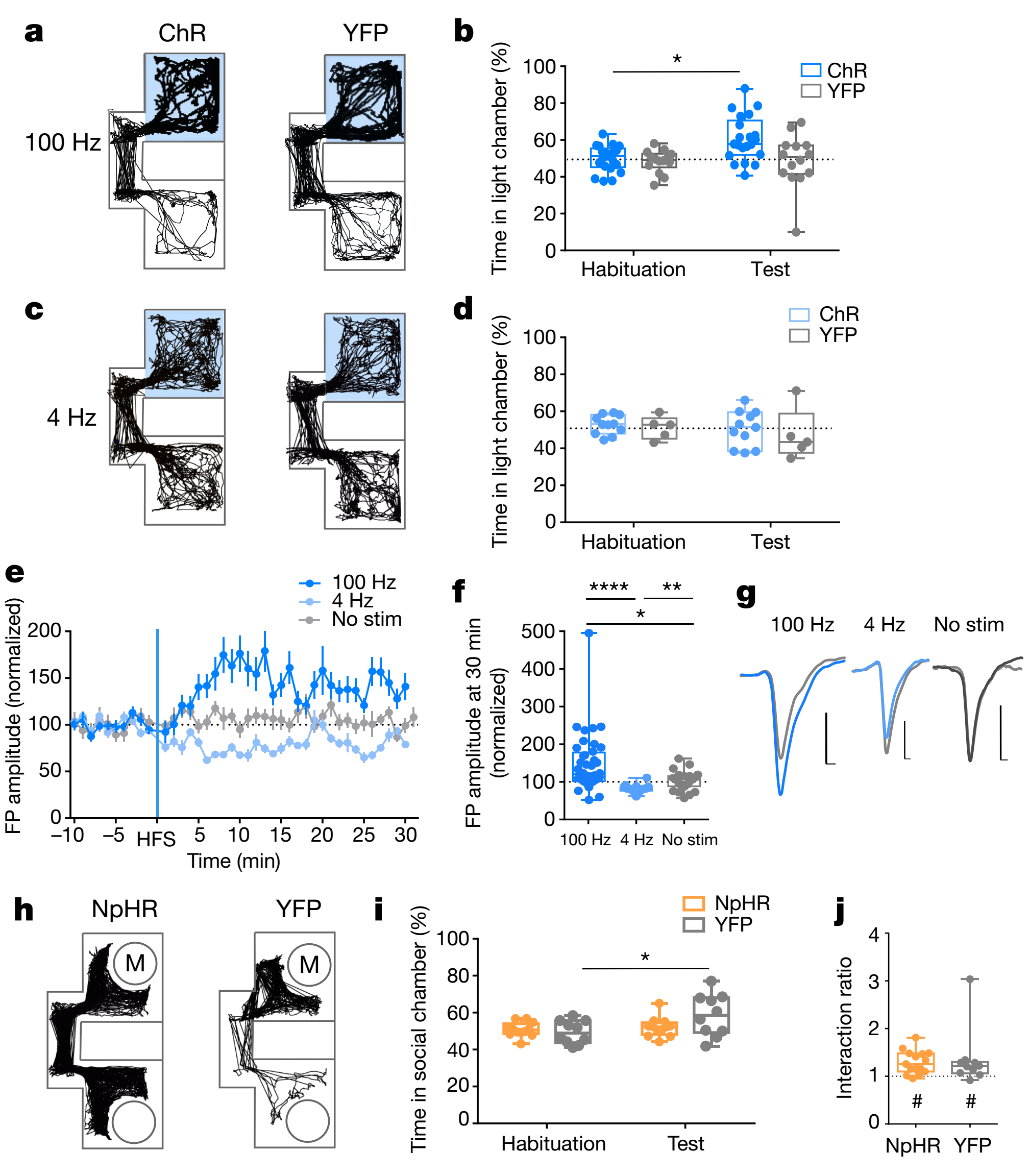 为进两步理论研究海马-伏隔核环路职能,创作者在小鼠海马打针AAV-NpHR,在伏隔核对侧广告植入电信光纤,并用交际形为條件定位喜好用于形为学范式。一般 情況下,小鼠看中于有另小鼠的左侧(交际看中),而光可以抑制海马-伏隔核环路后,此看中形为消亡,但小鼠与另小鼠中的交际时期变了(图2h-j)。此然而意味着海马-伏隔核环路参与活动奖赏性景象的辨认,而与奖赏的出现不相干。