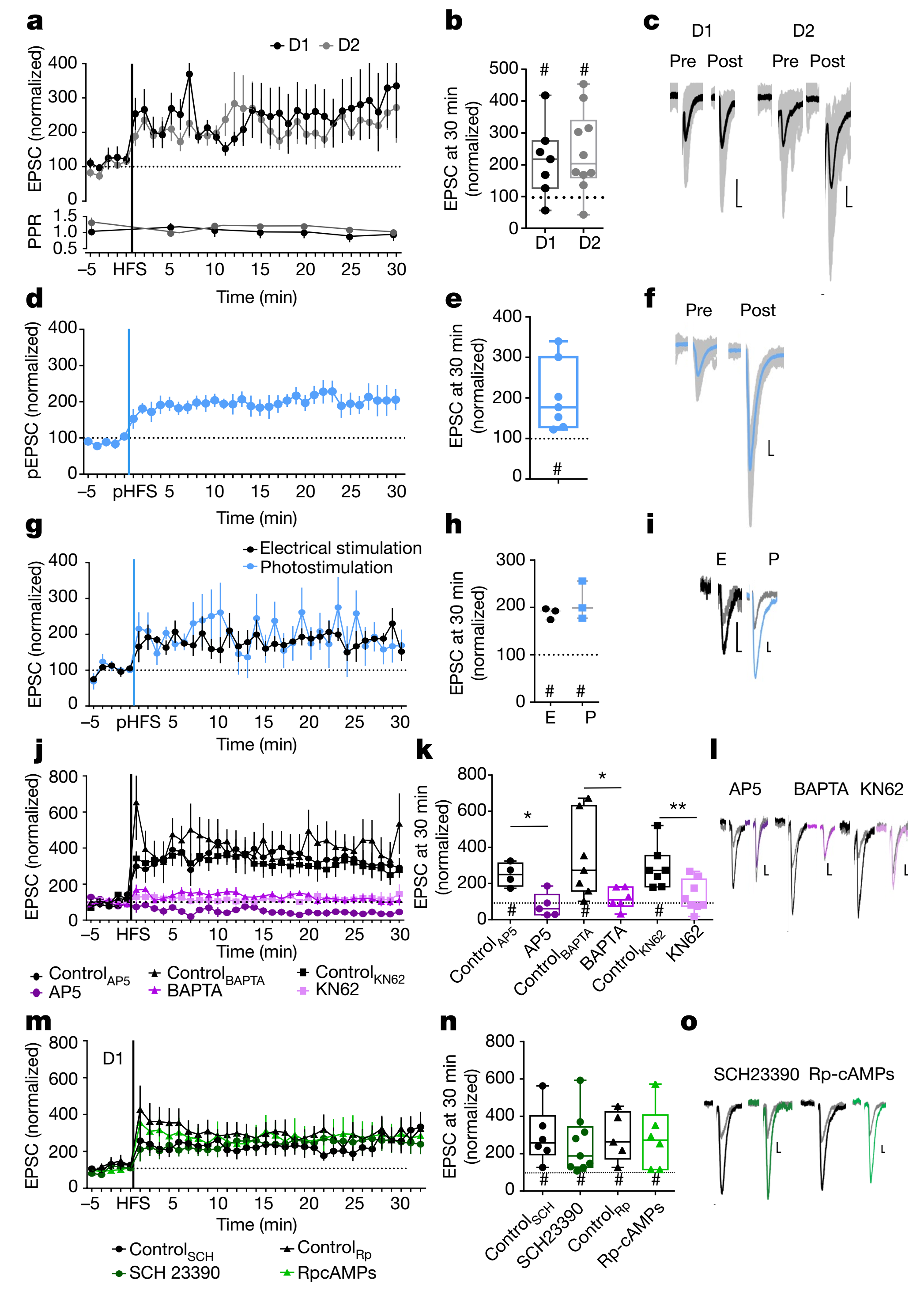 药理学学因素,享有NMDA肾上腺素受体拮抗剂AP5、钙铝离子络合物BAPTA或钙调蛋白质激酶压药制剂KN62可传导作出LTP反应(图1j-l)。为科研多巴胺是否有参与到者此LTP的造成,做者享有D1R拮抗剂SCH 23390与D1R下面信号灯原子PKA的传导剂Rp-cAMP,显示并不会影响LTP的造成,证实多巴胺并不参与到者海马-伏隔核突触范围内LTP的造成。