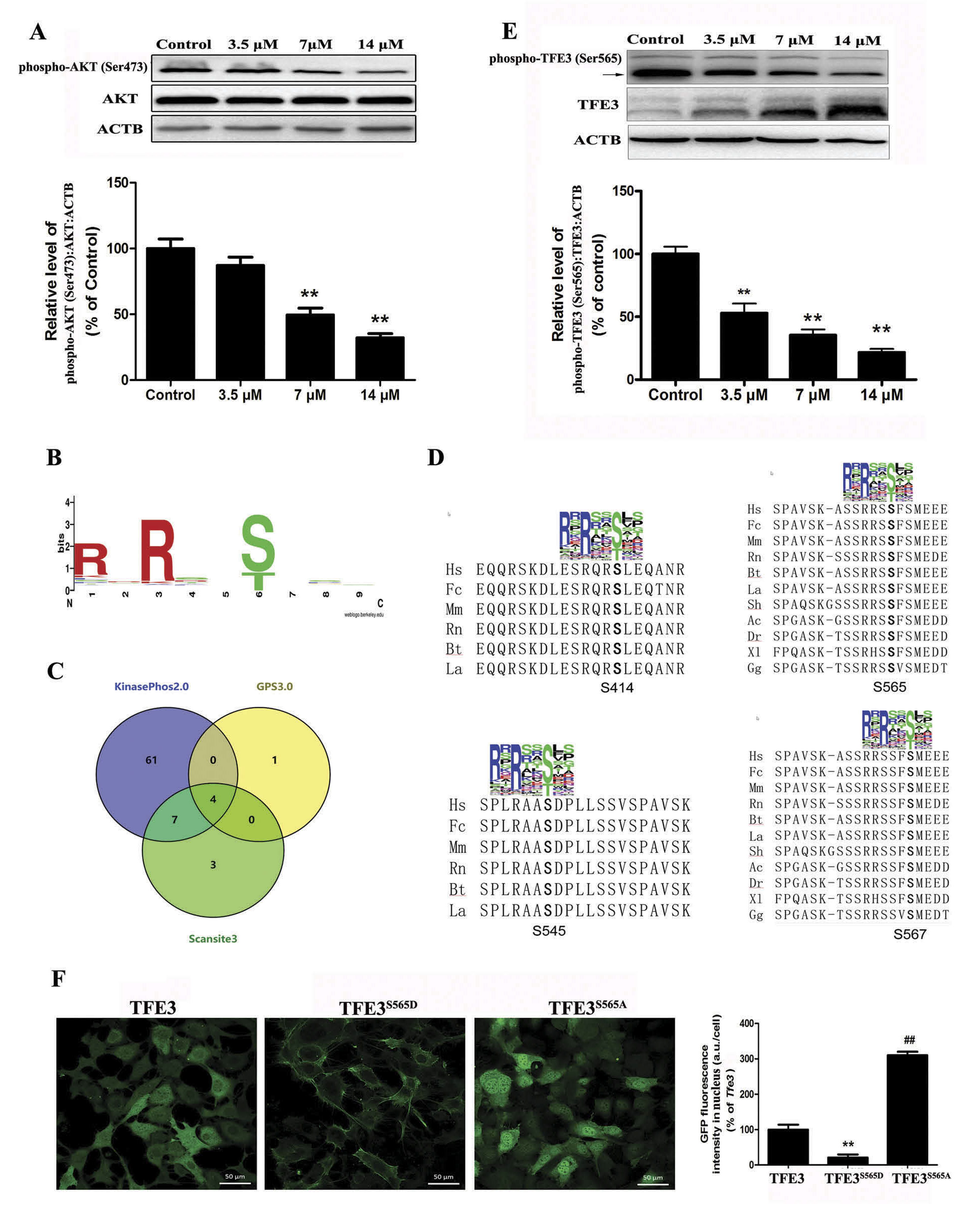 图4 AKT经由磷酸性反应ser565位点房产调控TFE3活力性