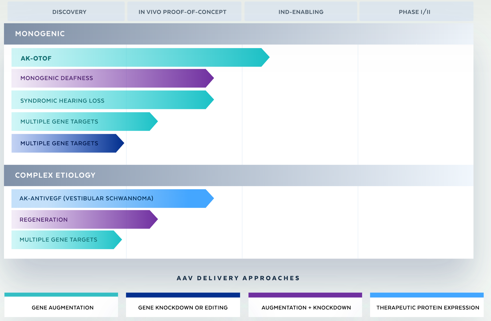 充分肯定,本届IPO募集钱财的重在功用包括广泛广泛用于力促其第一台人类染色体针灸AK-OTOF进去临床试验实验重要性期,AK-OTOF广泛广泛用于冶疗因OTOF人类染色体甲基化造成的的精神性听力材料财产损失。OTOF人类染色体商品编码了一大种称作Otoferlin的蛋清,在视听系統工做时,内耳毛细管胞会引发振荡,而本身振荡会转化成为动作图片电位差传回脑,行成声响的概念呢,而Otoferlin蛋清是数据引发的重要性。引发OTOF人类染色体甲基化的女性一般 天先性失聪,且近几年并并没有FDA签发的针灸。而Akouos设计规划的人类染色体冶疗针灸AK-OTOF重在向女性带来了职能性OTOF人类染色体,恢复原状Otoferlin蛋清表达方法,做到终结天先性失聪的对方。