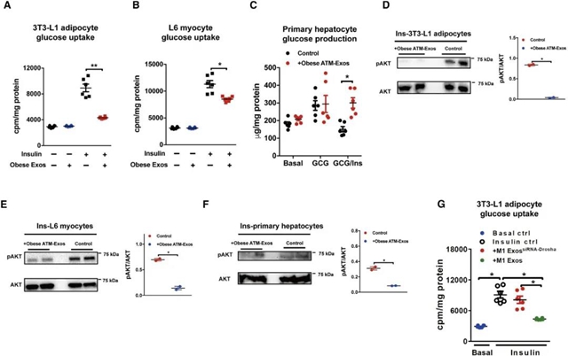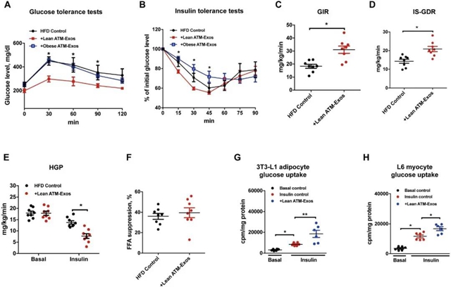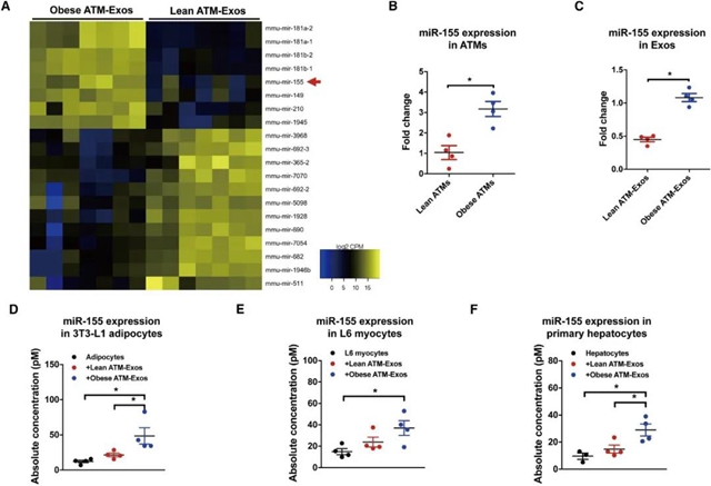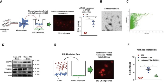 胰岛素抵抗是导致2型糖尿病的一个重要原因。证据显示,肥胖是导致胰岛素抵抗的最常见的因素之一[1]。促炎巨噬细胞(M1)分泌的细胞因子TNF-α被认为是肥胖引起的组织炎症的一个原因[2]。利用TNF-α抗体使其与TNF-α结合,发现对胰岛素抵抗和糖代谢的症状改善有限。因此,科学家相信一定存在其他的巨噬细胞和免疫细胞因子对胰岛素敏感起重要作用。美国科学家Jerrold M. Olefsky团队发表在《Cell》杂志上的文章“Adipose Tissue Macrophage-Derived Exosomal miRNAs Can Modulate In Vivo and In Vitro Insulin Sensitivity”,为我们进一步揭示了肥胖导致2型糖尿病的机制。作者研究了脂肪组织巨噬细胞(ATM)分泌的外泌体携带的miRNAs调节细胞胰岛素功能、系统性胰岛素敏感的作用。