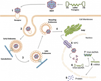腺相关病毒 (adeno-associated virus, AAV)是微小病毒科(Parvoviridae)家族的成员之一,是一类无法自主复制、无被膜的二十面体微小病毒,其直径约20-26nm,含有4.7kb左右的线状单链DNA作为基因组。....