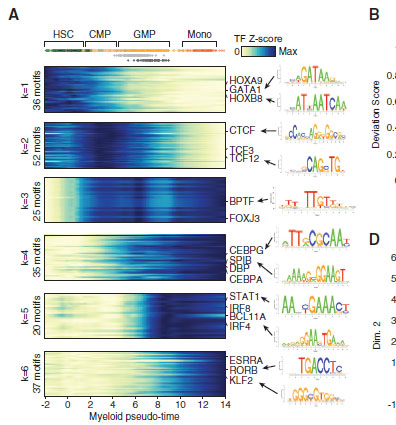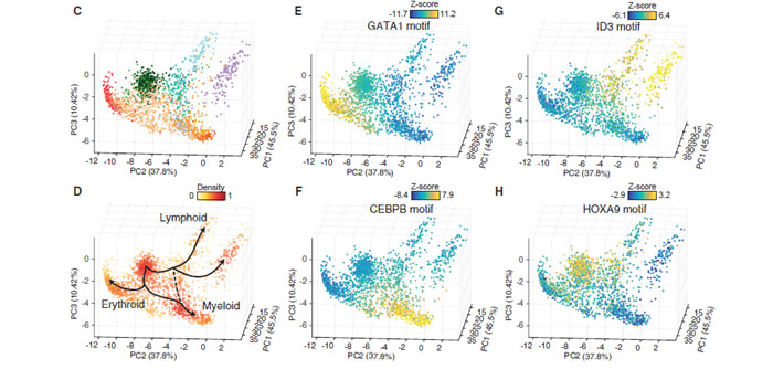 Buenrostro J D , Corces M R , Lareau C A . Integrated Single-Cell Analysis Maps the Continuous Regulatory Landscape of Human Hematopoietic Differentiation.[J]. Cell, 2018.