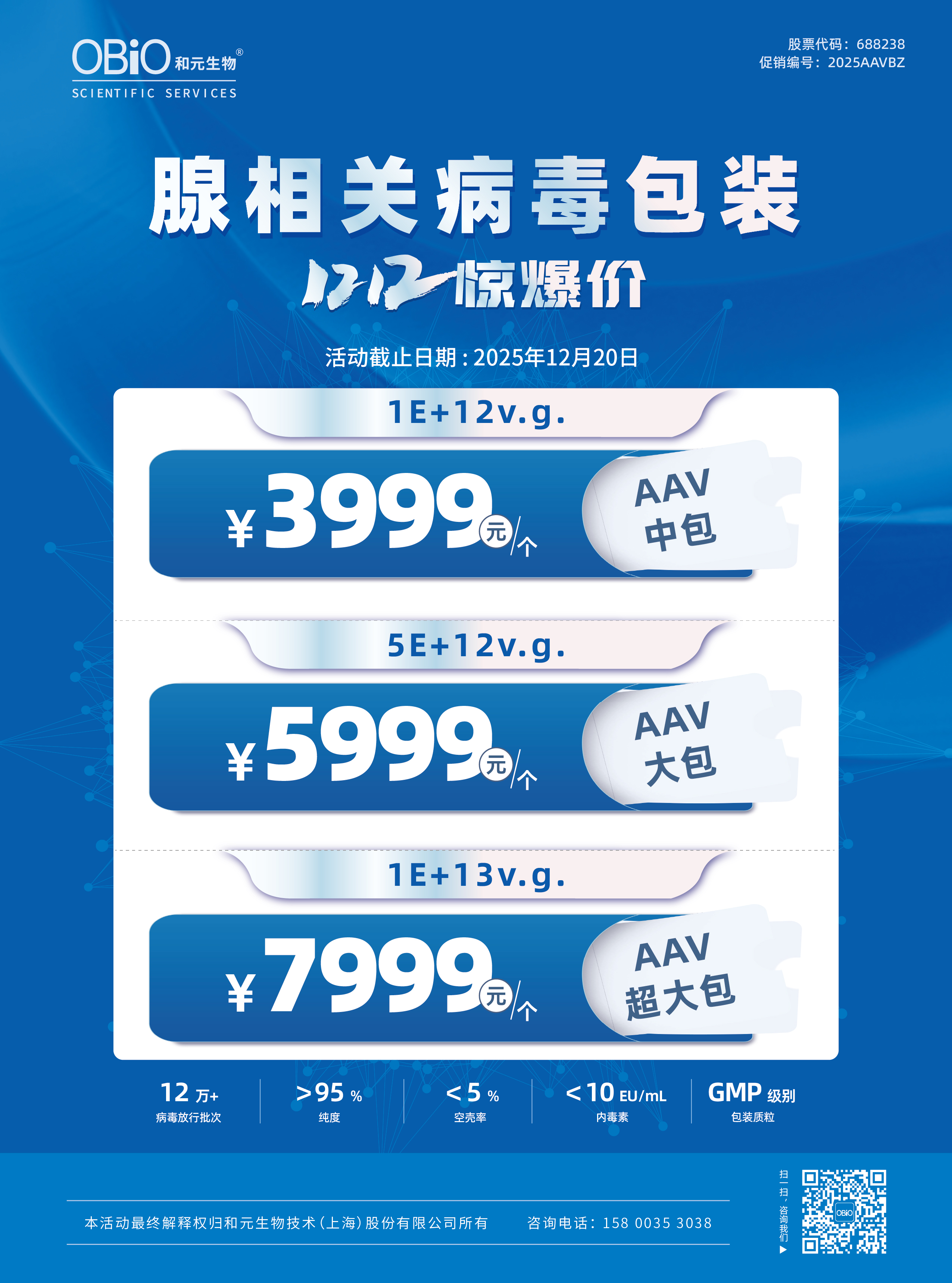 银河集团官网 双十三,腺相关内容类病毒包装方式超值惊爆价! 2025-12-05 14:00