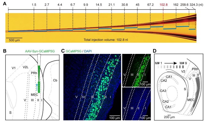 钙离子成像技术是一类可以在活体动物观察神经元活动的技术,其突出优点在于能够同时观察一群细胞的活动,借助病毒载体的特异性表达能力和神经环路标记能力,我们还可以观察特定类型细胞的活动。