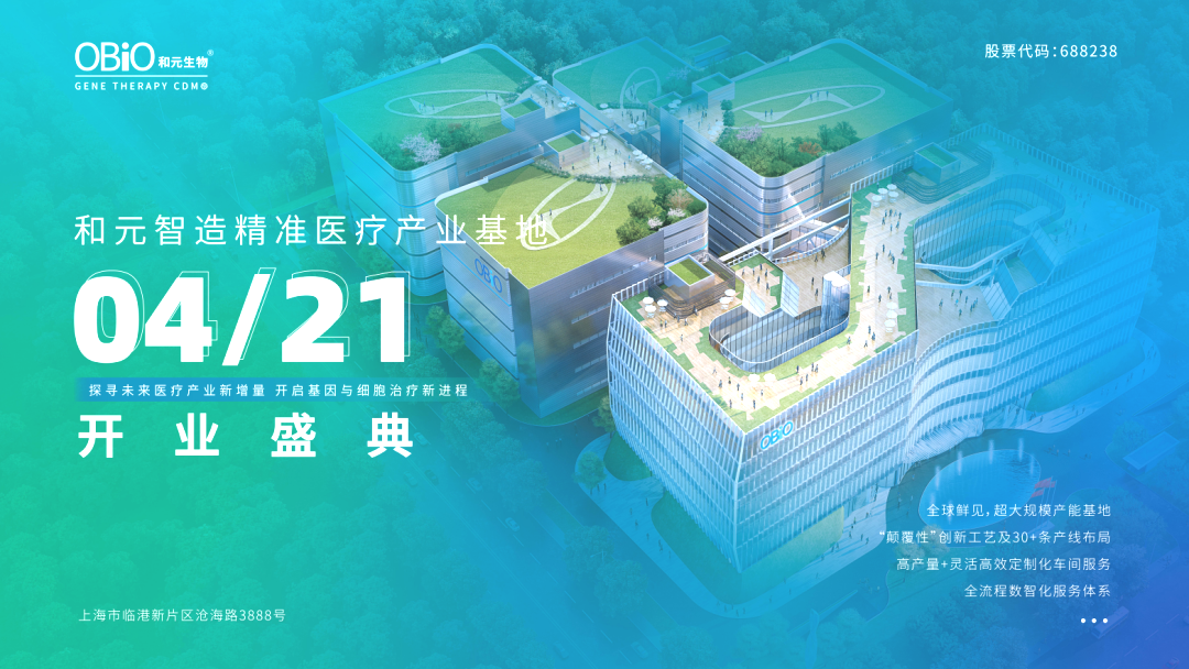 智造精准医疗产业基地开业盛典。同时基地厂区将全球首次正式对外开放,期待就行业领先生产工艺和设备产线做参观交流,共促基因治疗行业发展。