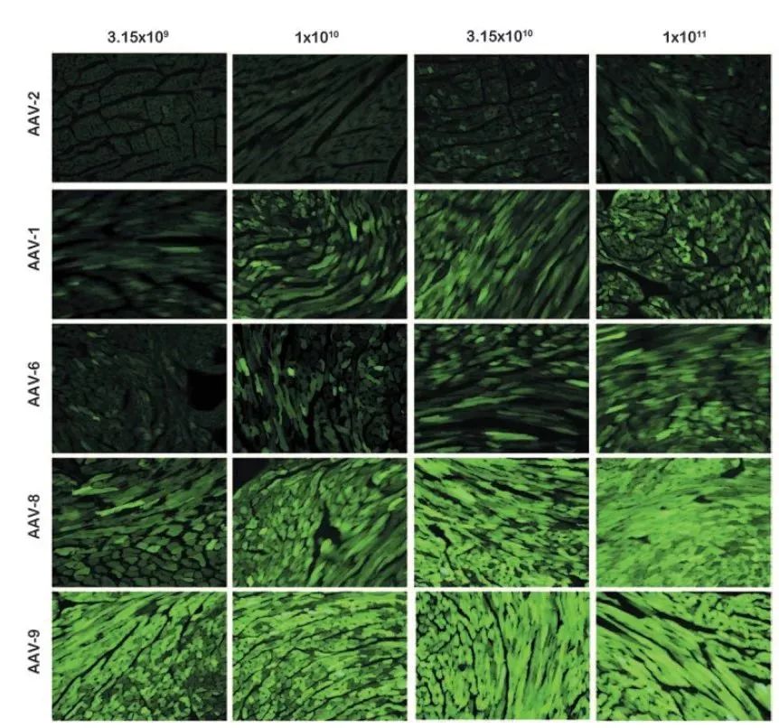各种血清型感梁对心脏病转导有效率更加(颈动脉注入1周龄小鼠,4周展现结论,PMID: 20703310)