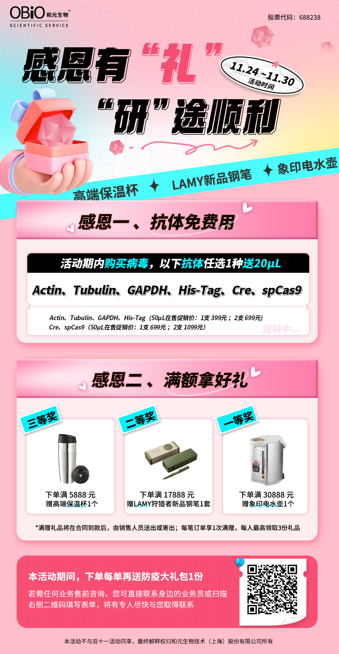 银河集团官网 生物 HAPPY THANKSGIVI NG DAY 感恩回馈大派送! 病毒载体类,全线温暖价到,好用不贵 买病毒,送抗体 大牌壕礼,满额就送 下单即赠 防疫大礼包 分享集赞,抢领银河集团官网 限量公仔 感恩回....