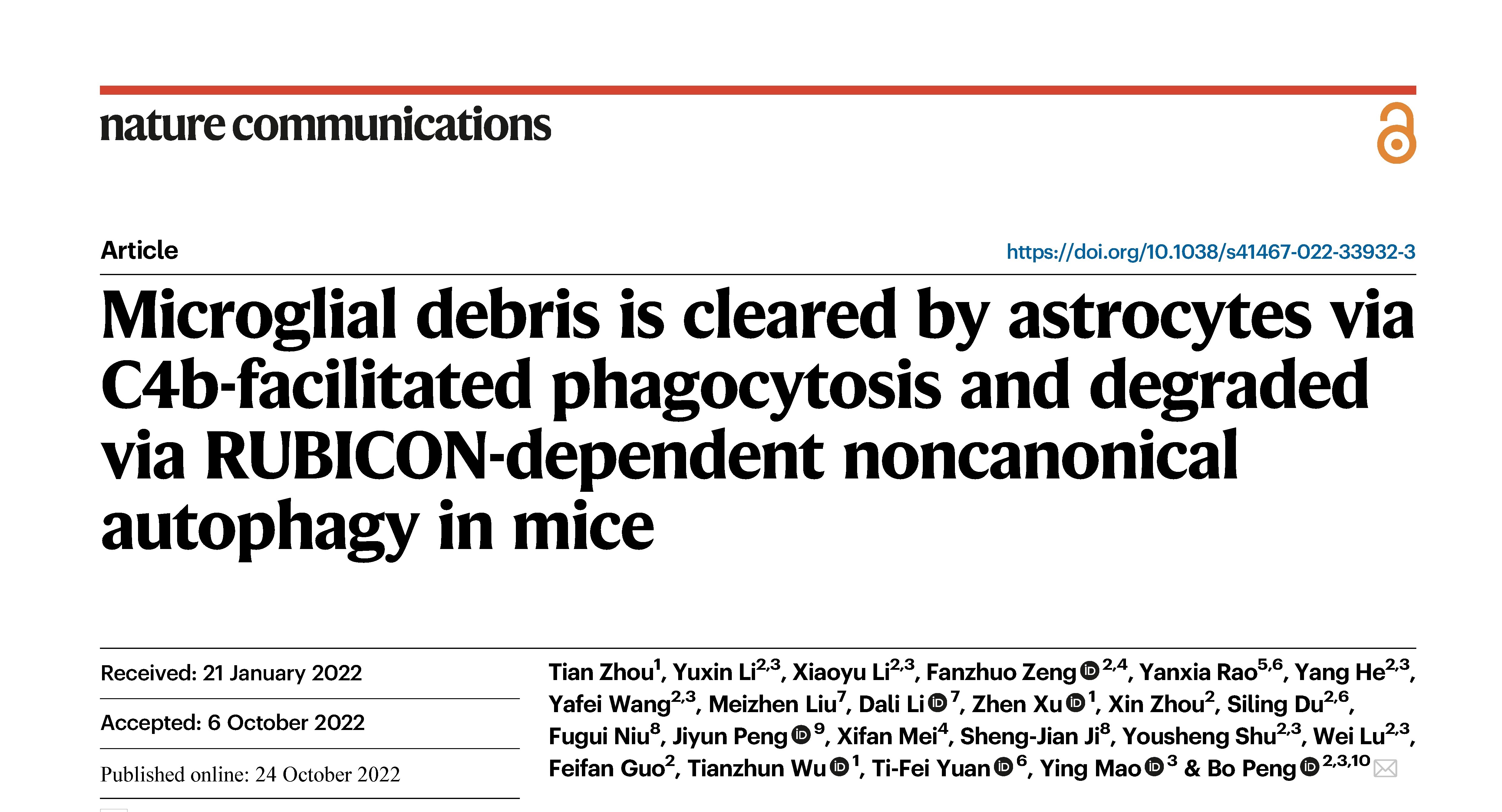 Nat Comms | 复旦大学彭勃精英团队探求小胶质体细胞皮肤碎片的清空考核机制