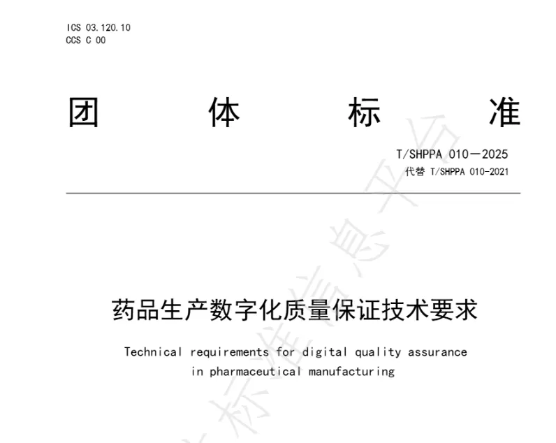 《药品生产数字化质量保证技术要求》(T/SHPPA 010-2021)于2021年8月26日发布,并于当年9月28日实施。标准实施近4年,推动了医药产业链与新一代信息技术的深度融合,为加快培育和发展新质生产力发挥了积极作用。