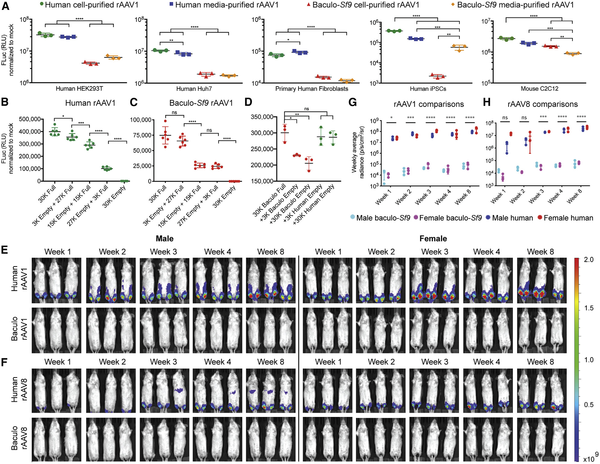一直以来在过来的多年里,风险管控部分悄然审批权若干个依托于AAV的表观遗传制疗物品,但该教育领域仍受到多选成就,诸如rAAV的时产、质、免疫装置原性等。2023年九月,Neil G. Rumachik抓捕在Mol Ther Methods Clin Dev.刊登的业务就对293血体细胞与Sf9血体细胞的rAAV加工装置区别做剖析。该业务挖掘,区别核心聚焦在加工流程中存在的沉淀物、衣壳淀粉酶反译后淡化(post-translational modifications, PTMs)和体内的/休外的感动效果(图2)