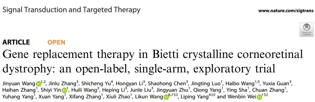 日前,魏文斌教受精英团对、杨丽萍探索员精英团对以其王立坤副探索员精英团对,在Nature子刊Signal Transduction and Targeted Therapy(IF=39.3)刊出了题写“Gene replacement therapy in Bietti crystalline corneoretinal dystrophy: an open-label, single-arm, exploratory trial”的探索本文,展现出了因其自动化ZVS101e临床治疗试验检测保持良好的稳定高性和非凡的有效率性效果。