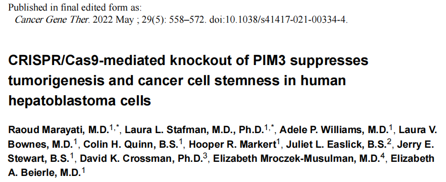 本文揭示PIM3可以促进肝母细胞瘤去分化,增加肿瘤细胞干性特征,为肝母细胞瘤治疗提出新的解决思路。....