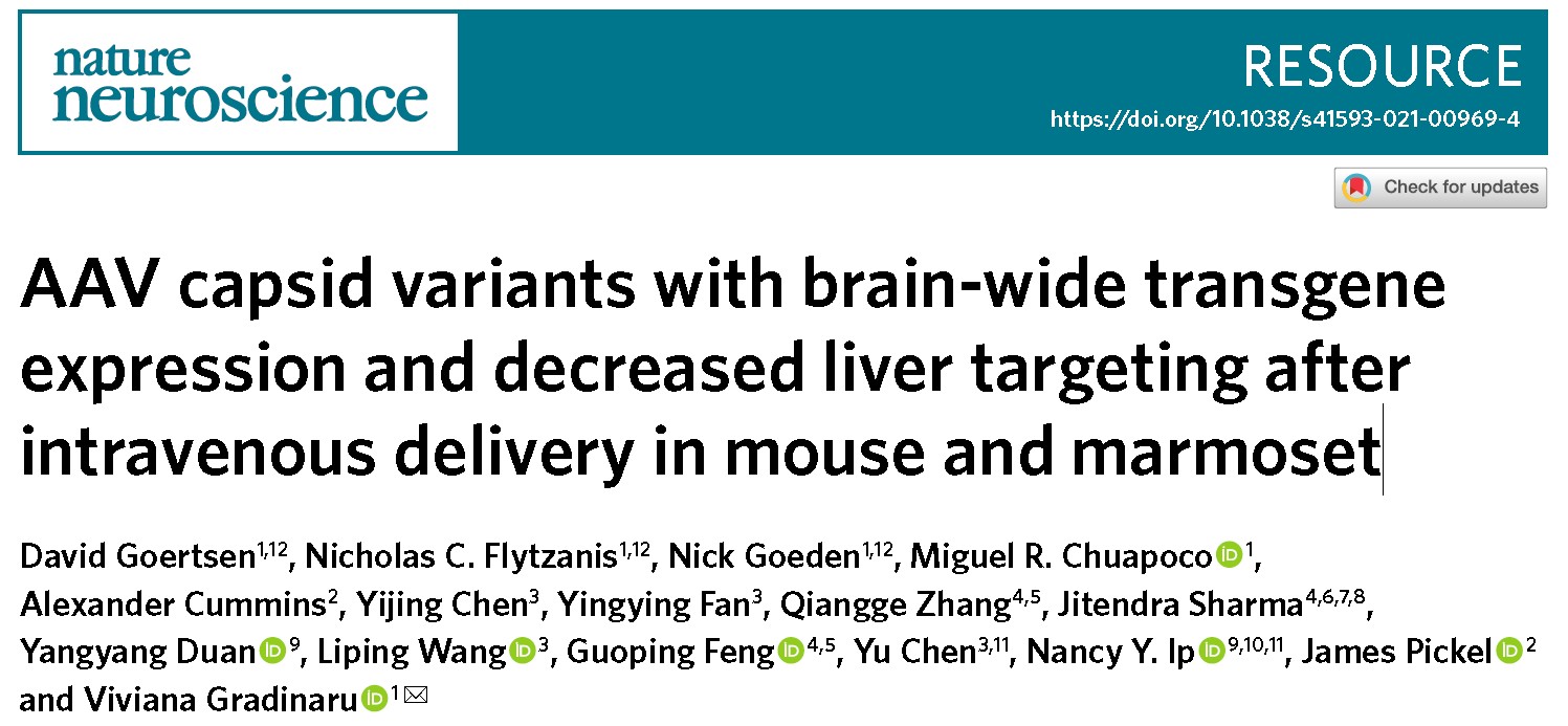 Nat Neurosci. | 新款AAV血清型,静脉血管到脑,打针注射器,全脑传达,肝部低靶向药物性!