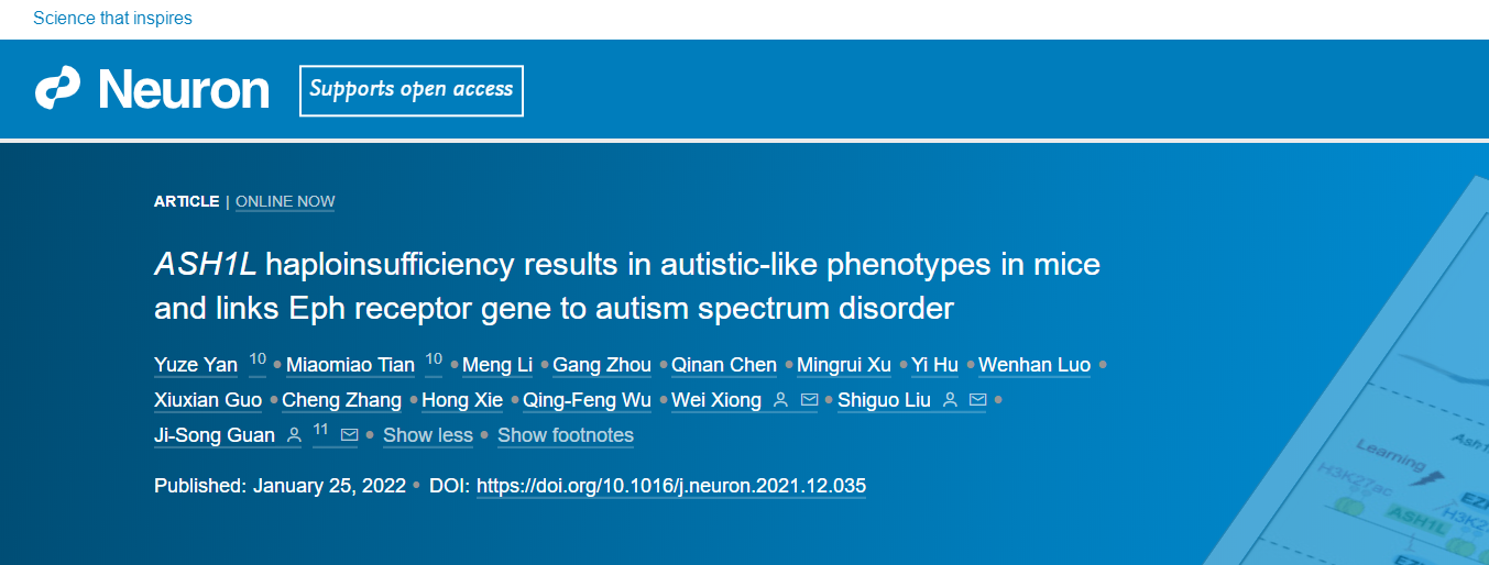 Neuron | 救活繁星妻子儿女!上科大管吉松组阐述ASH1L单倍严重不足致小鼠自闭症的运动神经机