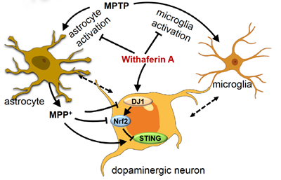 醉茄素A利用DJ1-Nrf2-STING轴在帕金森中展现脑神经保证反应