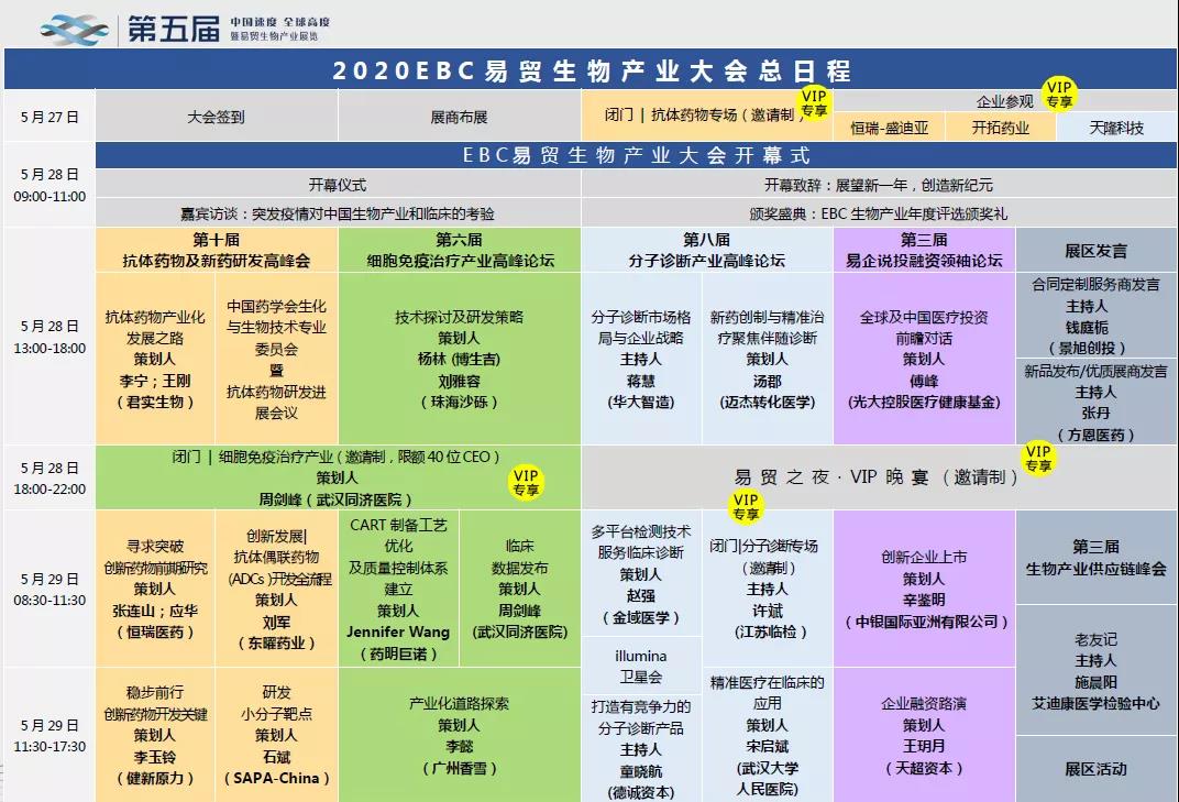 此次会议将于2020年5月27日至5月29日在中国苏州举行,本次大会由第十届抗体及新药研发高峰会、第六届细胞免疫治疗产业高峰论坛、第八届分子诊断产业高峰会、第三届易企说融资领袖论坛等活动构成。大会持续聚焦精准医疗,深入探讨诊断、治疗、用药全产业链,融合政策导向、市场投资、技术研发、临床应用等热门话题。此外,大会将在开展论坛会议的同时,举办生物产业展览,形成专业论坛与行业展览的多方联动结合,为全产业链提供交流合作的平台。